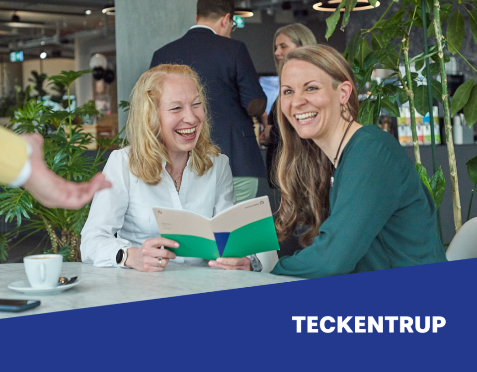 • Eine Person erzählt enthusiastisch einer weiteren Person etwas, beide schauen dabei etwas an